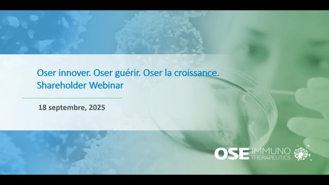 Au cours de ce webinaire, l'Equipe de direction d'OSE Immunotherapeutics présente l'ambition et l'innovation de la Société, ses leviers stratégiques, sa stratégie pour 2025-2028 et répond aux questions des actionnaires.
